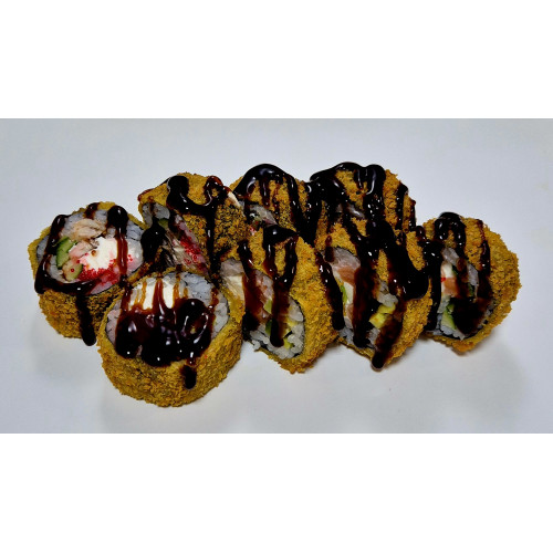 Угорь, сыр сливочный, икра тобико, огурец, соус-унаги( 8шт. )